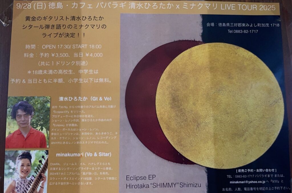 ミナクマリ&清水ひろたかライブ(2025年9月28日)のお知らせ